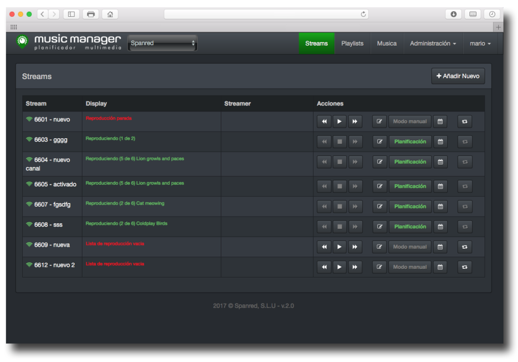 Permite la posibilidad de que varios gestores compartan la tarea de control los puntos de reproducción o Streamers. Pensado para un uso remoto, está diseñado de forma Responsive, de forma que su funcionamiento es gestionaba desde cualquier dispositivo sea móvil, PC o tablet.